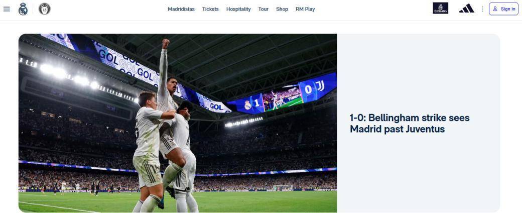 皇马官网对本场比赛的报道截图。